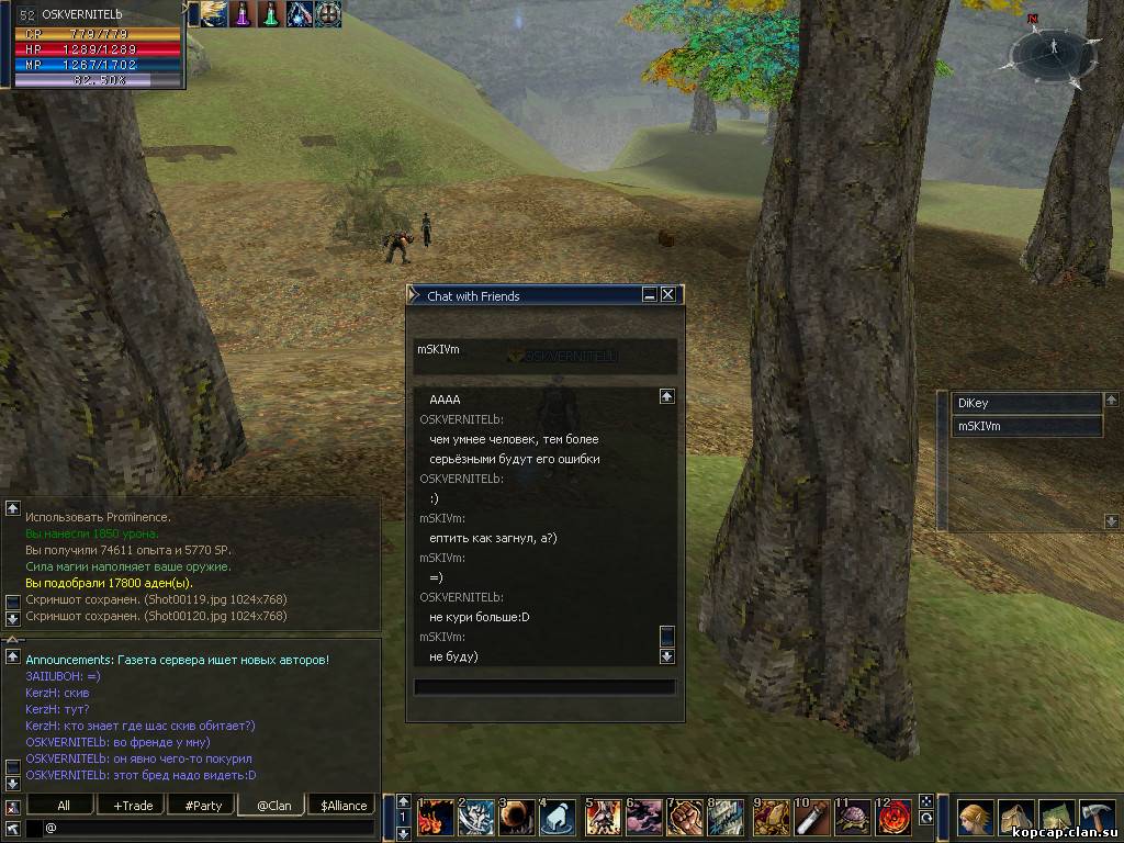 | Начинается серия скринов под название "Отжиг Скива, самого НЕ матного КЛ на сервере". Понеслась
